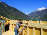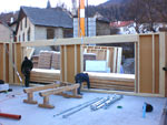 Baustoffes Holz im Bauwesen, genauer bei der Erstellung von Bauwerken.